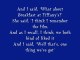Cette chanson raconte l'histoire d'un homme qui, à la suite de sa rupture avec sa petite amie, essaye de lui rappeler les bons moments qu'ils ont vécus ensemble, notamment par l'intermédiaire du film "Diamants sur canapé" ("Breakfast at Tiffany's"), qui devait être leur film favori. Malheureusement, la fille semble ne plus rien vouloir avoir à faire avec son ex, et se contente de répondre laconiquement, comme si il s'agissait d'un simple film. Cette réaction attriste le garçon, et c'est à ce moment là qu'il se rend compte que la fille l'a definitivement rayé de sa vie.