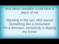 Ce n'est que mon interprétation, mais j'ai l'impression qu'à travers la métaphore du Dinausore, King Crimson parle de l'être humain en des termes plutôt féroces :